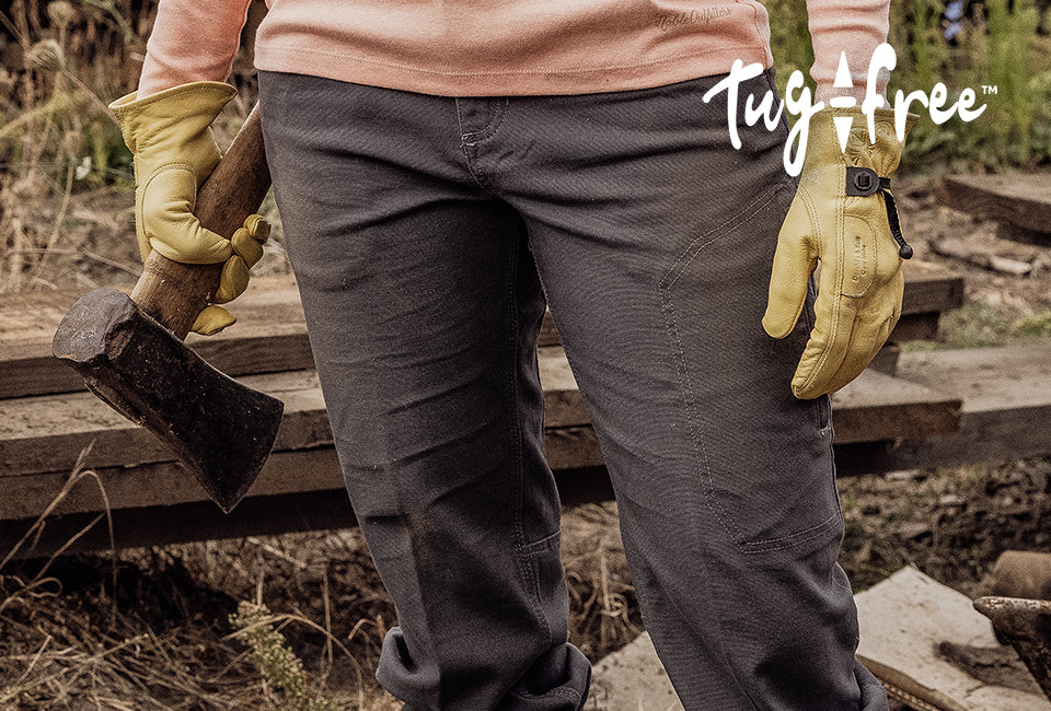 The Noble Outfitters Tug-Free™ Utility Pant is designed to fit without the fuss. Featuring a high-waisted stretch waistband gives you the confidence to bend, twist and reach without the tug. Nine total pockets allow you to keep your belongings close for easy access. The combination of durability, flex construction, a gusset crotch and Tug-Free™ allows you to work without the worry.