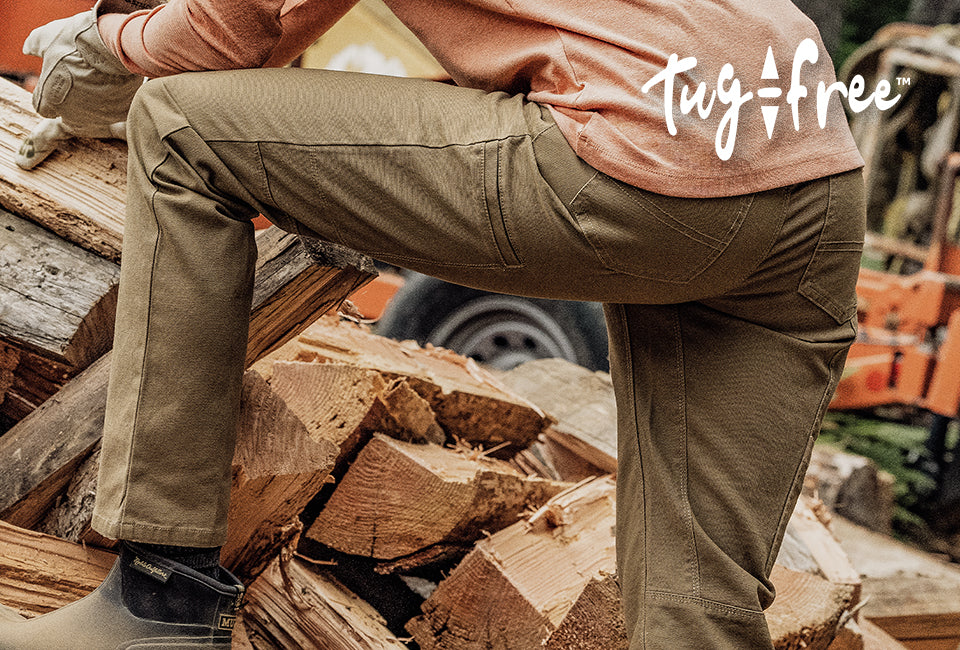 The Noble Outfitters Tug-Free™ Work Pant is designed to fit without the fuss. Featuring a high-waisted stretch waistband gives you the confidence to bend, twist and reach without the tug. Nine total pockets allow you to keep your belongings close for easy access. The combination of durability, flex construction, a gusset crotch and Tug-Free™ allows you to work without the worry.